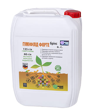 Високоефективний, водорозчинний препарат, що містить солі гумінових кислот, екстракт морських водоростей до складу яких входить комплекс фітогормонів і фізіологічно активних речовин, амінокислоти та мікроелементи природного походження в легкодоступній формі для рослин.