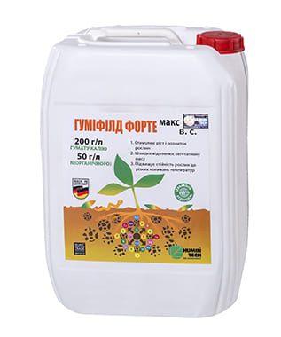 Високоефективний, водорозчинний препарат, що містить солі гумінових кислот, стартову дозу органічного азоту, амінокислоти та мікроелементи природного походження в легкодоступній формі для рослин. Стимулює ріст і розвиток рослин Швидко відновлює вегетативну масу (шкідники, хвороби, град) Підвищує стійкість до різких коливань температур Обробка насіння – 0,8 л/т; Обприскування – 0,2-0,4 л/га N (органічний) 50 г/л Солі гумінових