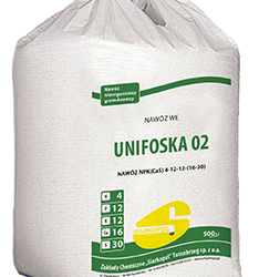 UNIFOSKA 02 – багатоскладникове мінеральне добриво, що містить поживні речовини у легкодоступних для рослин формах. Дане добриво передусім призначене для підживлення озимих культур – зернових і ріпаку. UNIFOSKA 02 можна також ефективно застосовувати під всі ярі культури, а також для лук і пасовищ, додаючи азотні добрива в залежності від потреб відповідних культур та етапу вегетації. Добриво містить сірку, незамінну в процесах побудови білків.