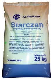 • ALWERNIA-Cульфат магнію семиводний - порошкоподібне повністю розчинне у воді добриво, призначене для позакореневої обробки та фертигації в суміші з усіма типами мікродобрив та ЗЗР.